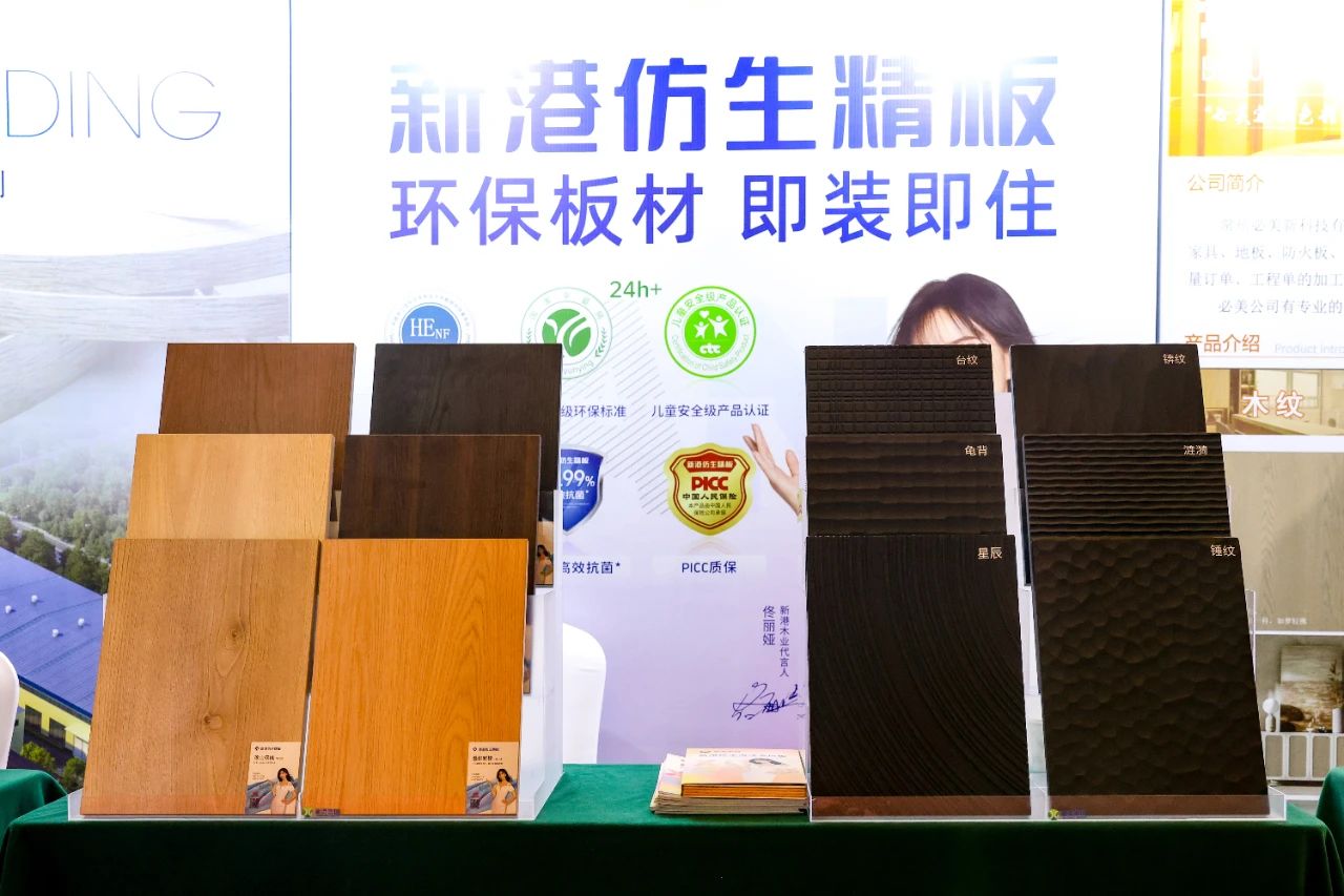 此外,一直以來深受關注的新港仿生海洋多層板、新港2.0花色也在盛會現場逐一展現。新港仿生海洋多層板創新采用新港仿生膠,將海洋中的貽貝粘附原理運用到木質人造板膠合中,成功突破傳統多層實木板在甲醛超標、防水欠佳及功能缺失等方面的瓶頸,打造功能性應用板材,實現產業的賦能與革新,在業內扛起品質大旗。