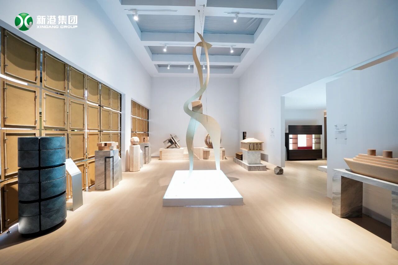 步入展位,最先驚艷目光的,是那片“光影柔織之夢”——0.5mm新港仿生超薄纖維板如絲帶般輕柔飄舞,這款斬獲業內首枚日內瓦國際發明展金獎的創新產品,不僅以極致輕薄的質感勾勒出獨特美感,更將中國木業的原創仿生新品,穩穩帶向了世界舞臺中央。