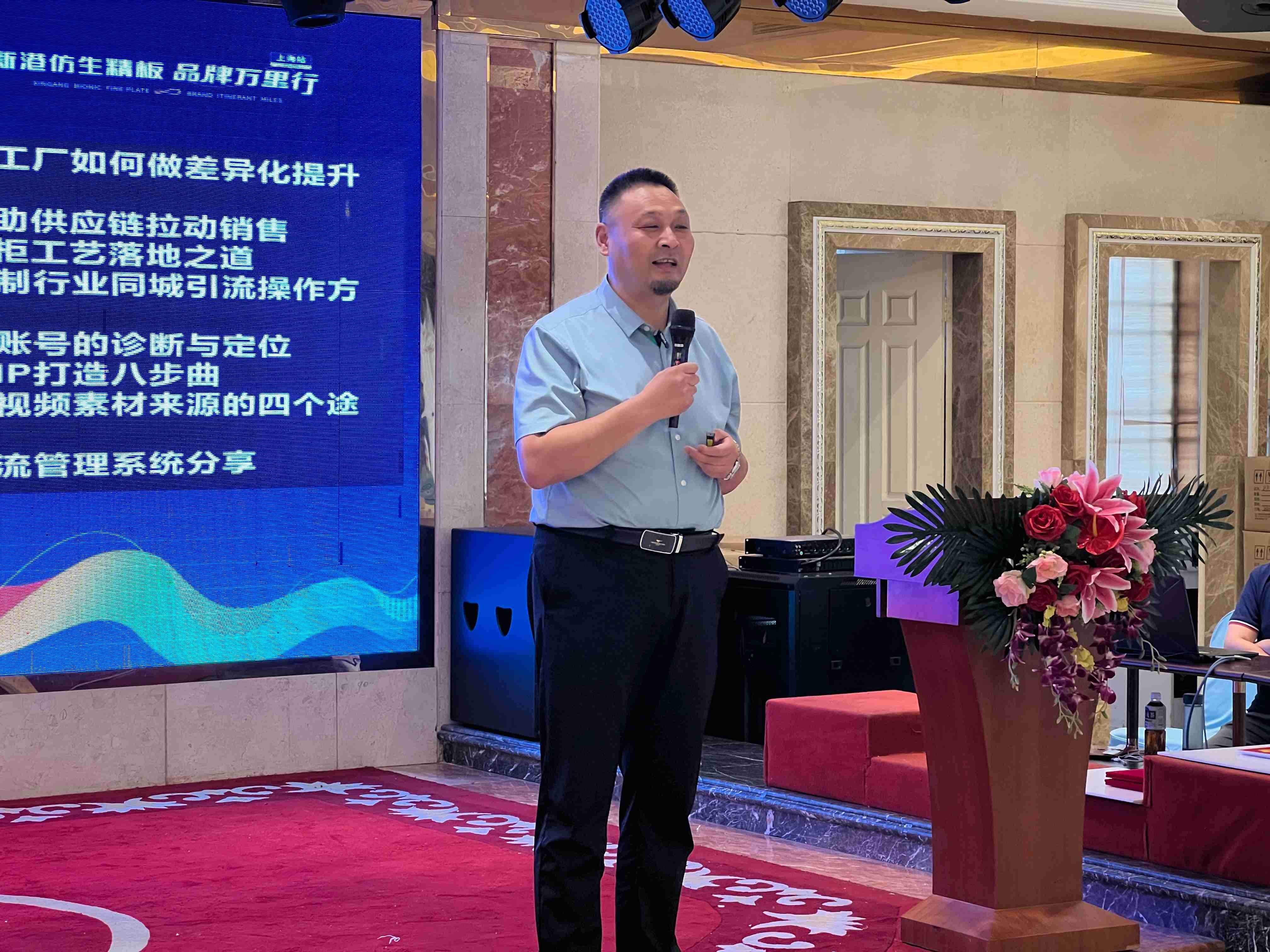 新港集團仿生精板營銷總監劉軍憑借豐富的定制行業營銷經驗和新媒體操盤運營的實戰經驗,從新媒體綜合技能培訓、定制工廠新媒體賬號的診斷與定位、新媒體IP打造、新媒體資源支持、直播間搭建和直播能力培養等方面進行分享,幫助定制工廠建立新媒體運營的系統性、結構性思維與技巧。