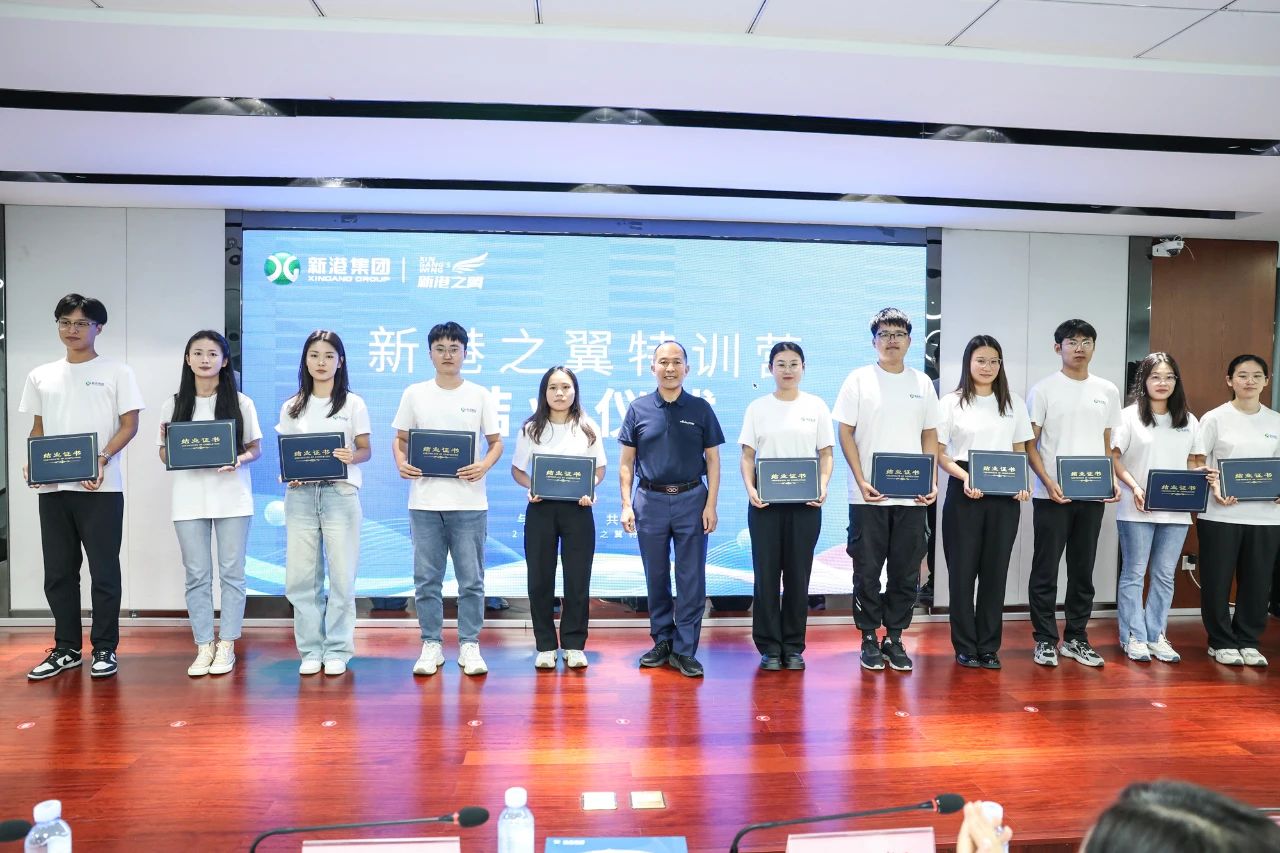 作為新港精神的引領者、新港人成長道路上的燈塔,新港集團董事長魏孝新親自為新港之翼特訓營成員們頒發結業證書,整個過程莊重而溫馨,這是對他們學習成果的肯定,也是對未來的期許。