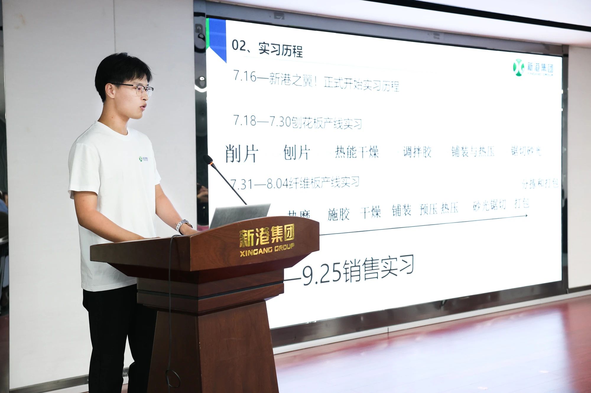 9月26日,新港之翼特訓營結業儀式順利舉行。新港集團董事長魏孝新,副總裁劉穎、姜婷婷,研究院總監閔德秀,刨花板生產線負責人劉曉亮,纖維板生產線負責人劉飛,以及陪伴小翅膀度過寶貴時光的各位師傅們到場參與儀式,共同見證新員工們的成長與收獲。在奏唱國歌、新港之歌后,與會人員通過觀看培訓期間的精彩片段展示,回顧了特訓營期間的難忘時光。每位小翅膀懷揣著對未來的憧憬和對公司的高度認同,毅然決然地選擇了新港,從初見時的陌生到如今的默契無間,從基礎理論的學習到實際操作的熟練掌握,每一步都凝結著汗水與智慧,都展現出他們非凡的毅力與才華,這一切的背后,離不開師傅們的悉心指導與無私奉獻。
